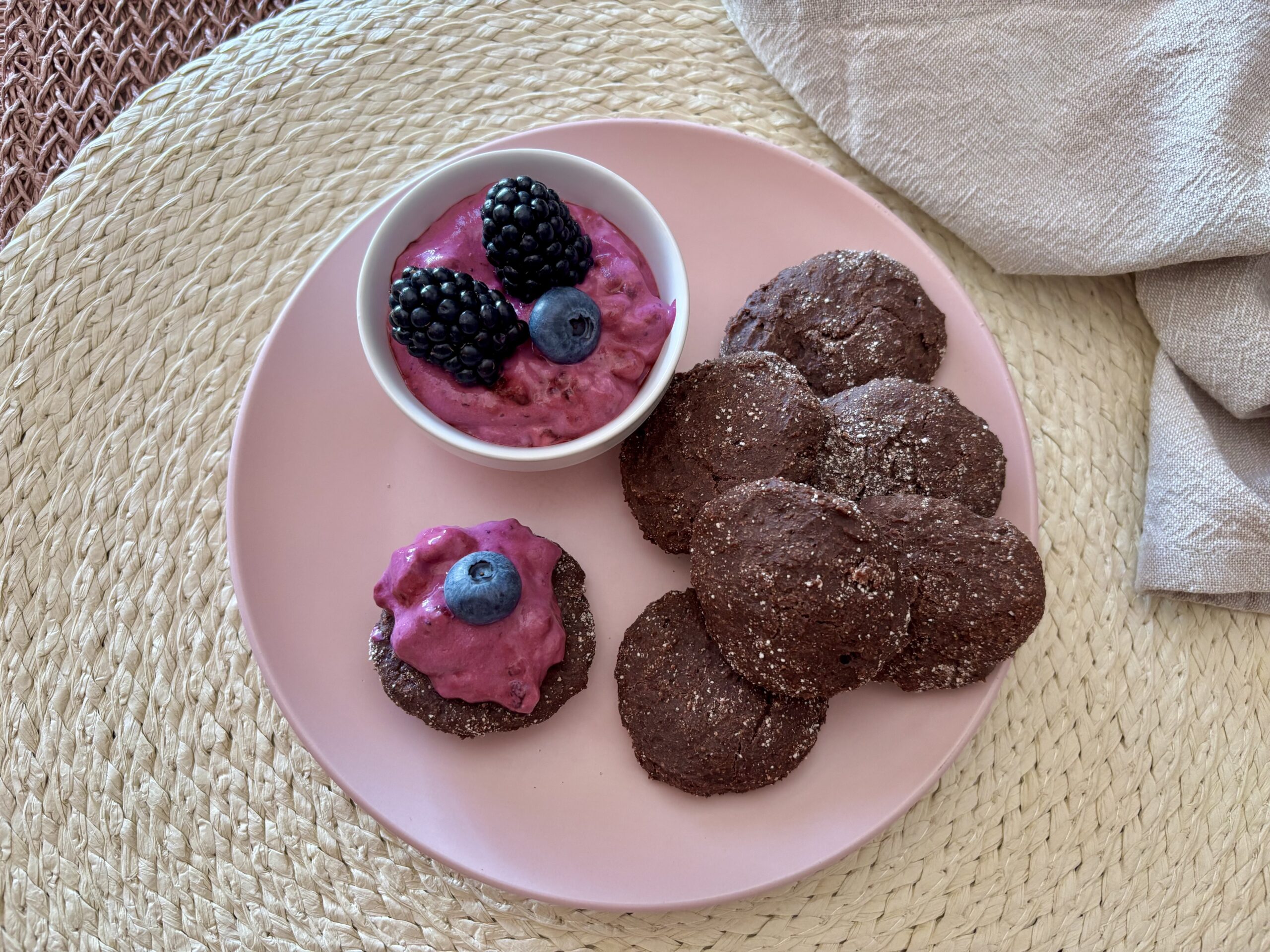 Biscotti al cacao con crema di frutti di bosco