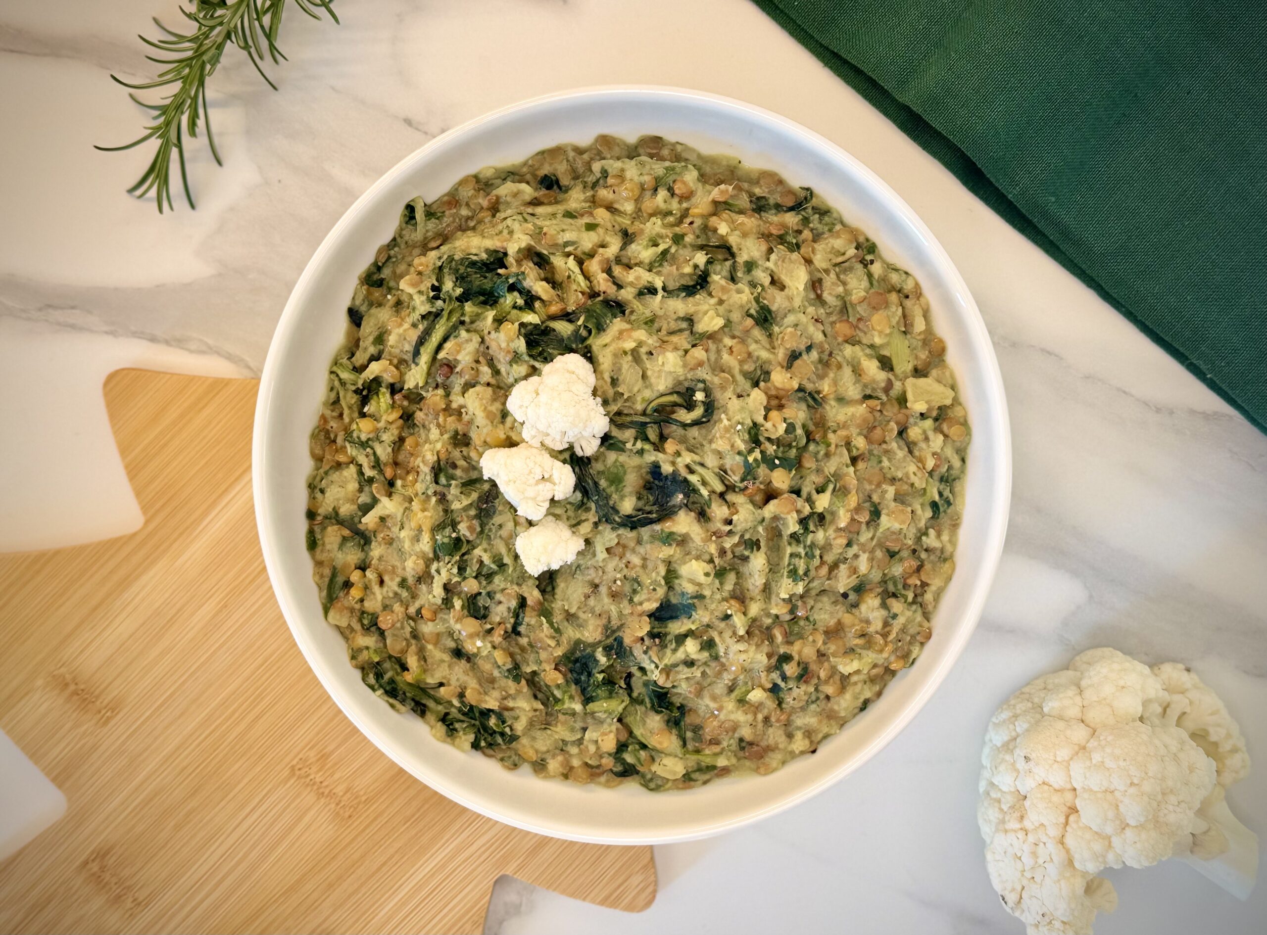 Curry di cavolfiore, spinaci e lenticchie rosse